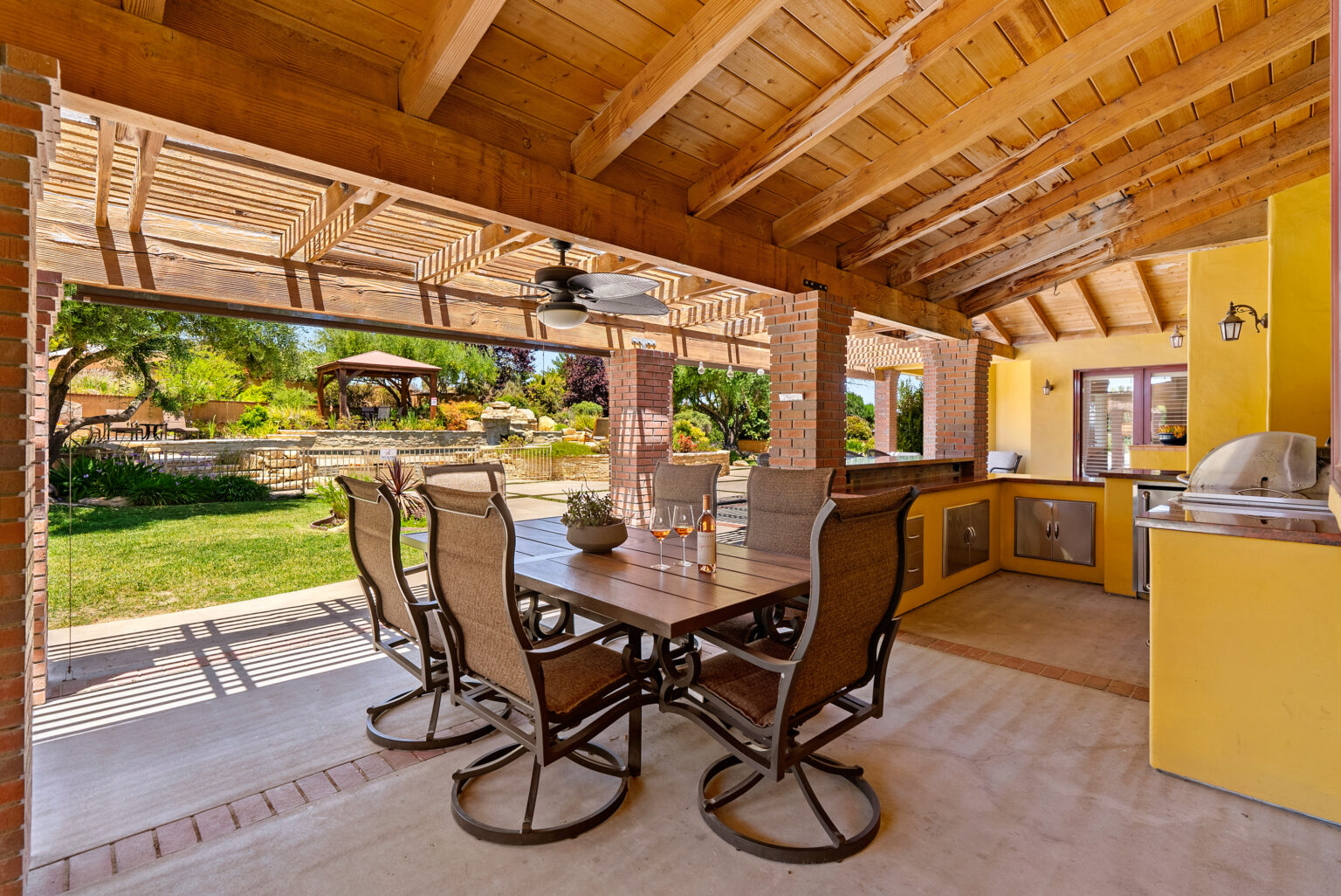 Every room in the house has access to extraordinary views and/or access to the breathtaking exterior living space. The exterior spaces were designed for outdoor living to the fullest with an immaculately landscaped backyard with pool and waterfall, hot tub, fire pit, outdoor kitchen, chef’s garden and citrus grove. New Feature just added- pool heating is available upon request prior to your stay at an additional rate.